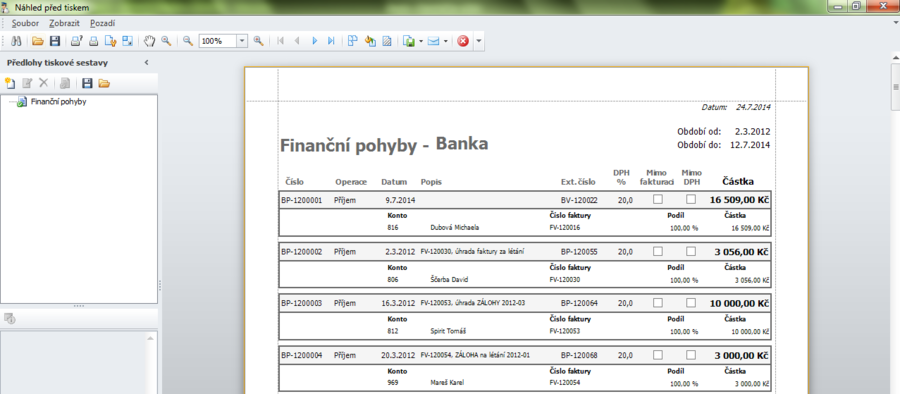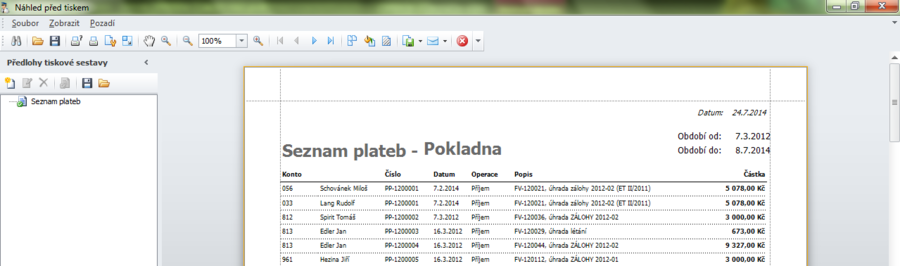 - Seznam plateb - připraví k tisku pouze seznam plateb se základními informacemi.