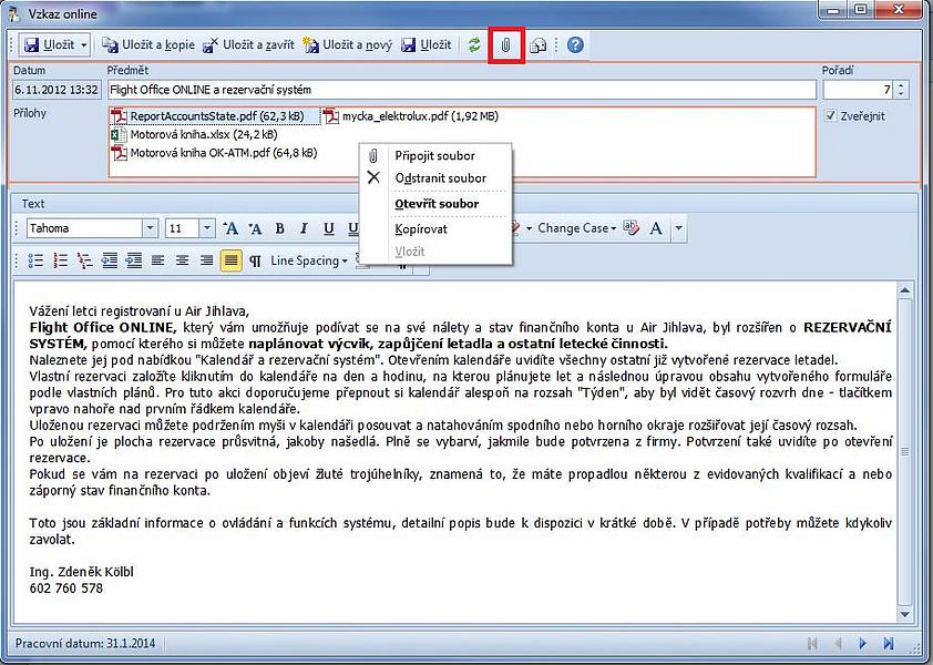 jsou zprávy ve formátu podobném e-mailu, které lze vytvářet ve Flight Office, rozesílat mailem osobám evidovaným v programu a přenášet je na ONLINE na jakousi nástěnku, kde jsou zveřejněny pod nabídkou "Informace provozovatele".