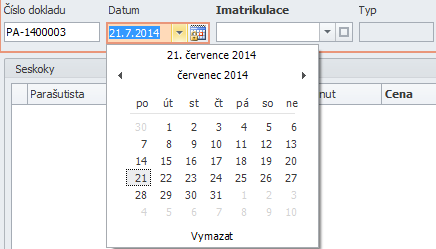 - číslo dokladu letu - vyplní se automaticky, pokud zakládáte záznam o seskoku přes záznam o letu v motorové knize.