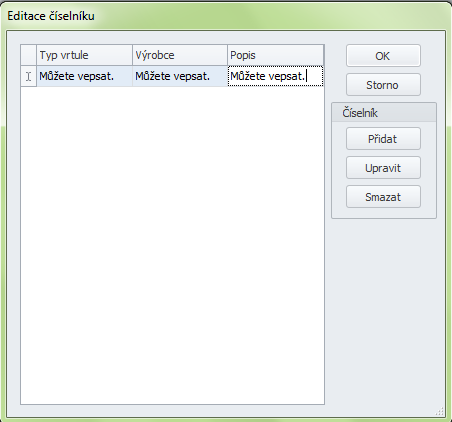 Při používání programu sami uvidíte, které číselníky a v jakém množství budete potřebovat a které nikoli.