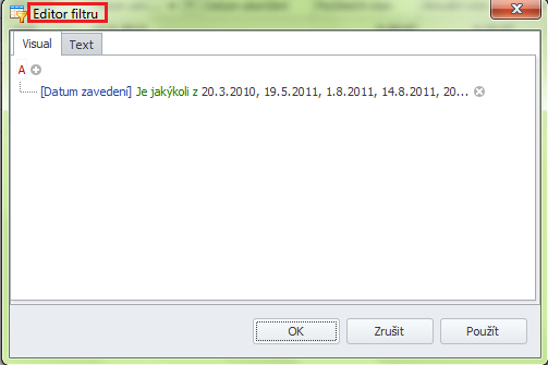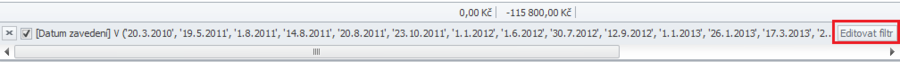 Pro snazší orientaci v záznamech je možné filtrovat, které chci zobrazit. Jsou dva způsoby filtrování - pomocí tlačítka "Filtr" (dostupné pouze pro výše zmíněný výčet) a výběr podle nadpisů sloupců (dostupný pro většinu záznamů).