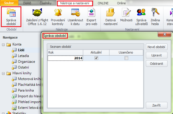 - správa období - možnost vytvoření nového období a uzavření starého. Pokud v daném roce existují záznamy, nelze jej editovat ani mazat.