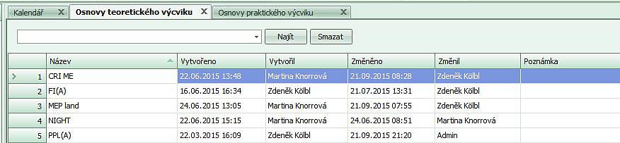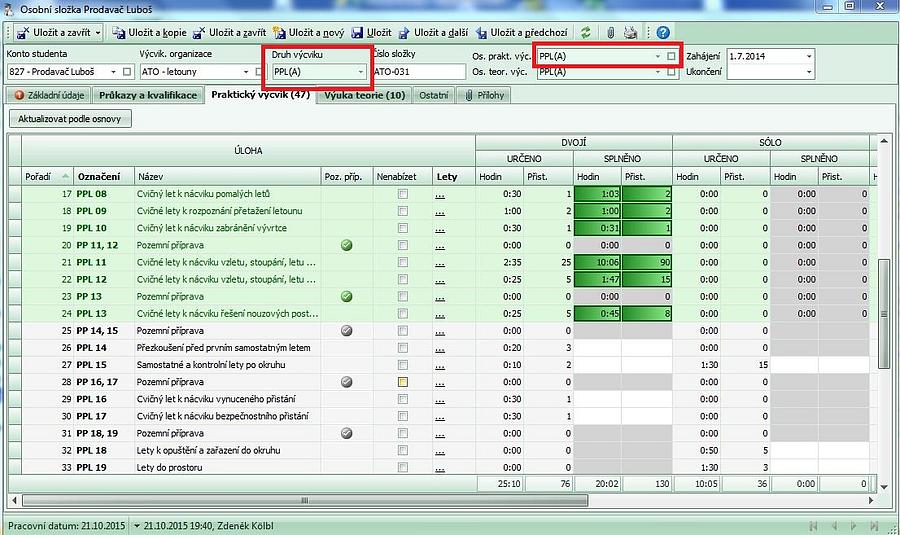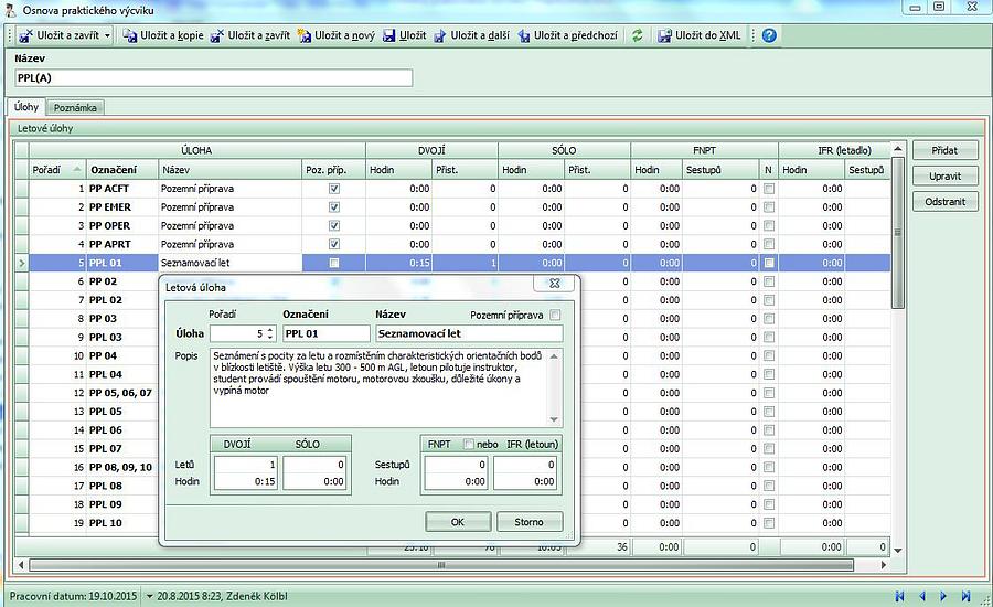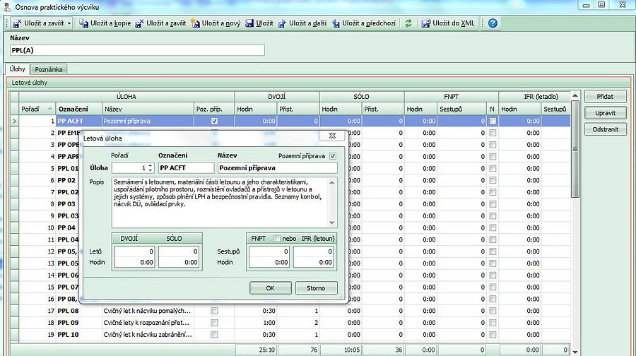 - po uložení "Seznamu letů" se aktualizuje grafické znázornění plnění výcvikové osnovy.