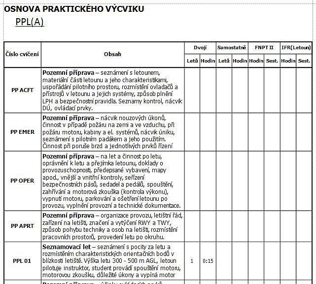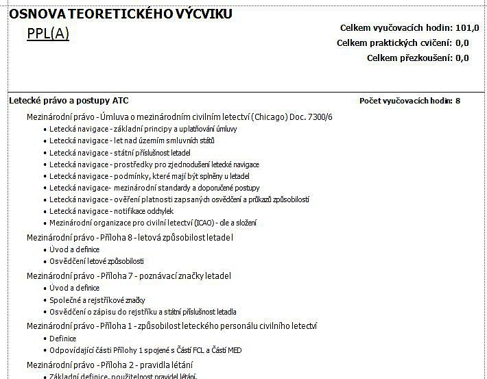 obsluhy a urychlení práce jsme pro vás připravili ke stažení a importu do programu dvě vzorové osnovy - teoretickou osnovu výcviku PPL a výcviku pilota ULL. Osnova teoretického výcviku pilota