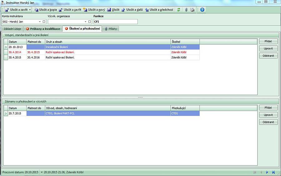 2. zadání a doplnění záznamu o výcviku z letové evidence