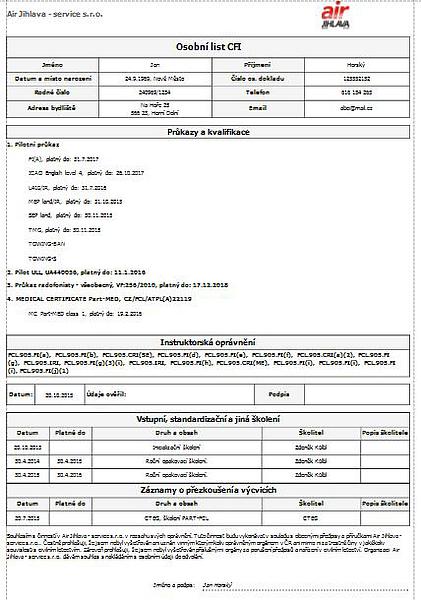 Všechny potřebné části osobní dokumentace lze vytisknout a sestavit tak po dokončení výcviku kompletní dokumentaci ke kontrole a založení do archivu.