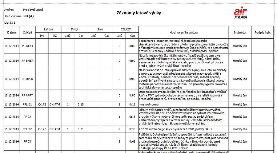 Instruktoři mohou editovat a doplňovat letové záznamy do osobních složek výcviku přes Flight