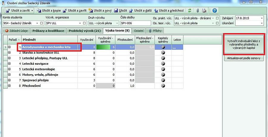 - pak již stačí k jednotlivým osnovám doplnit studenty, kteří se lekce výuky teorie zúčastnili.