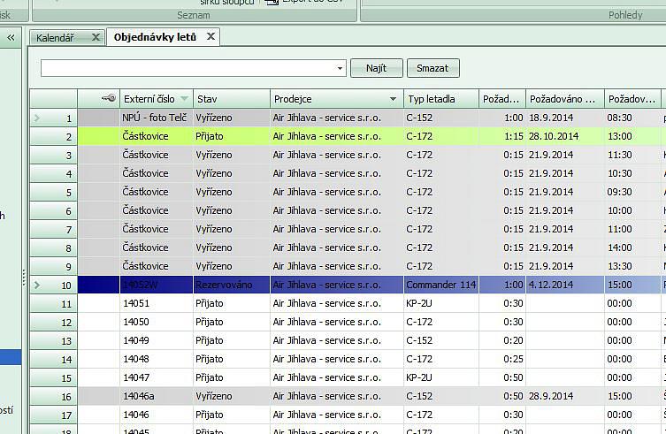 - otevřete jej volbou "Objednávky letů" v navigačním stromu v levé části programu.
