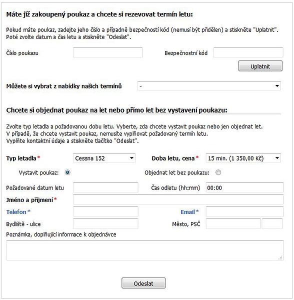 Součástí modulu objednávky je i možnost použít formulář na veřejné zadávání objednávek letů, který můžete umístit například na své internetové stránky.