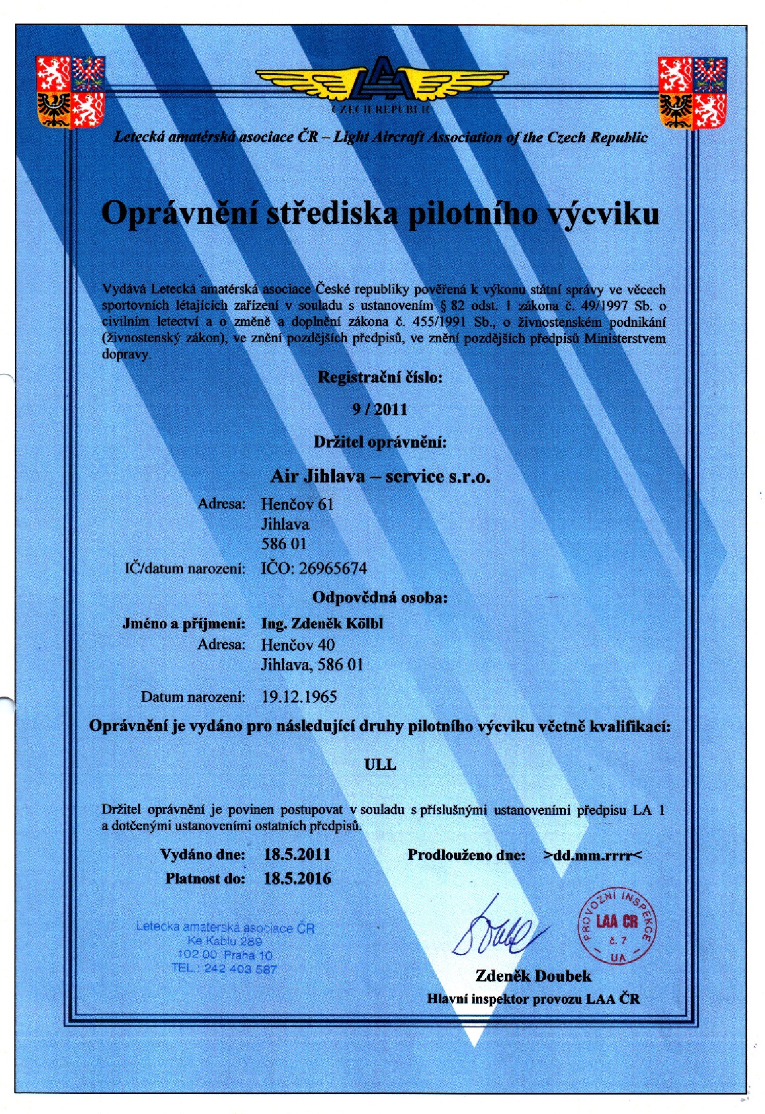 Středisko pilotního výcviku ULL - reg. č. 9/2011