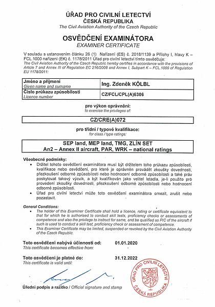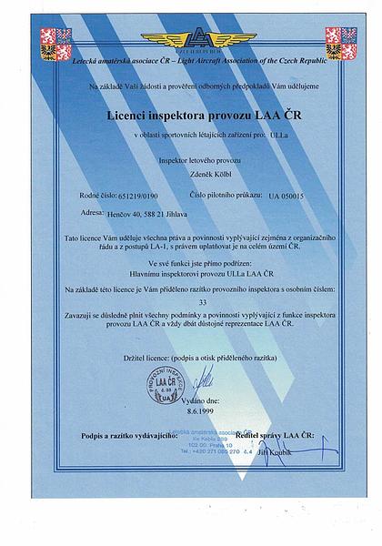 | Pověření examinátora - CZ/CRE(A)072 | Licence inspektora provozu LAA ČR | |